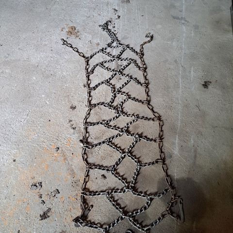 Leylandissa olleet jääketjut, piikkien pituus 10 mm. Kuva sekava mutta ketjut ovat kasassa lavan päällä. Vain nouto