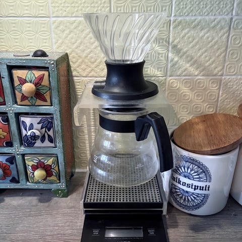 Hario Buono Kettlellä onnistut keittämään ja kaatamaan veden tarkasti ja varmasti. Pienestä suuaukosta kohdistat juuri halutulla nopeudella ja tarkkuudella veden haluttuun kohtaan kahvipetiä. Buono Kettle on lähes välttämätön kaikissa pour-over-kahvinvalmistusmenetelmissä aina Harion V60 suodattimesta Chemexiin.
