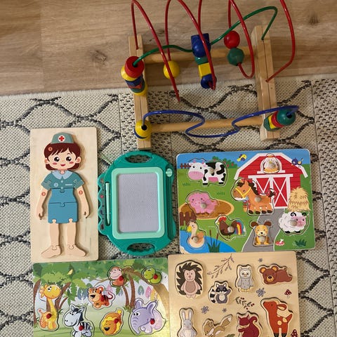 Kaikki osat tallessa. 2 lautapeliä (dino ja kapteeni koukku), ryhmä hau pelikortit ja nalle puh palapelit. Käytönjälkeä varmasti löytyy. Nouto.