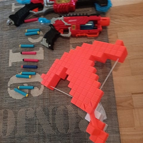 Nerf X-Shot lasten leikkipyssy, jossa on valkoinen, oranssi ja sininen väritys. Sisältää pyörivän lippaan. Käytetty ja toimiva. Hartikkala/Lappeenranta.