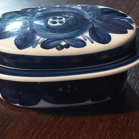 Myydään Arabia Anemone voirasia ilman kantta. Astian väri on sininen ja valkoinen. Uudenveroinen kunto.