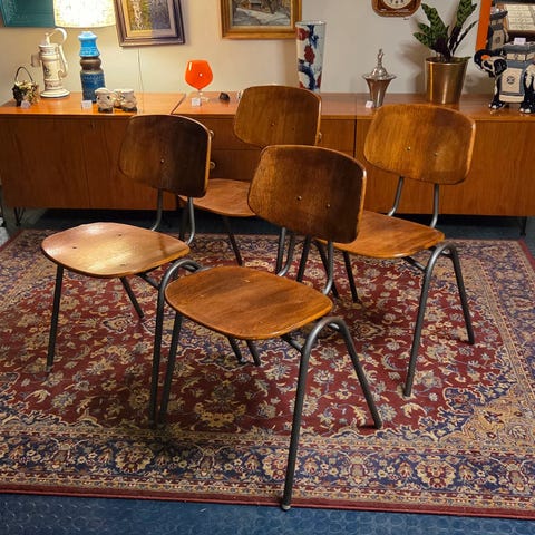Carl Johan Bomanin suunnittelemat tuolit, ollut käytössä luultavimmin teatterissa tai vastavaassa. Yksi kahden istuimen tuoli ja kolme erillistä.60-luvun tyyli on tunnettu minimalistisesta ja funktionaalisesta muotoilustaan. Tämä aikakausi korosti käytännöllisyyttä ja selkeitä linjoja, mikä näkyy näissä tuoleissa. Valmistajaa ei ole tiedossa, mutta tyyli on selkeästi aikakaudelle ominainen.Tuolit ovat kuluneet ja niissä on näkyviä naarmuja ja kolhuja. Puu on paikoin kulunut ja lakkaus on osittain haalistunut.
