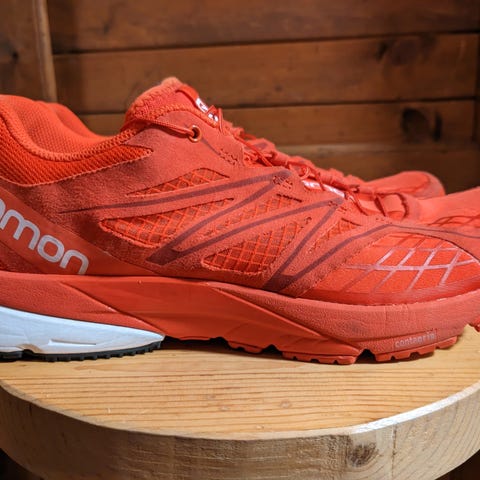 Salomon S-LAB Speed -polkujuoksukenkä mustana ja kilpa-ajon punaisena.