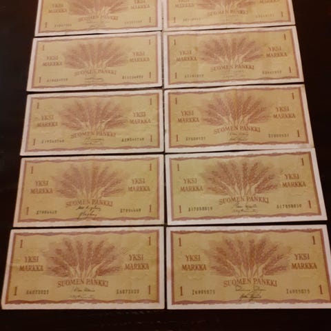 1 markan setelit peräkkäiset hyvät