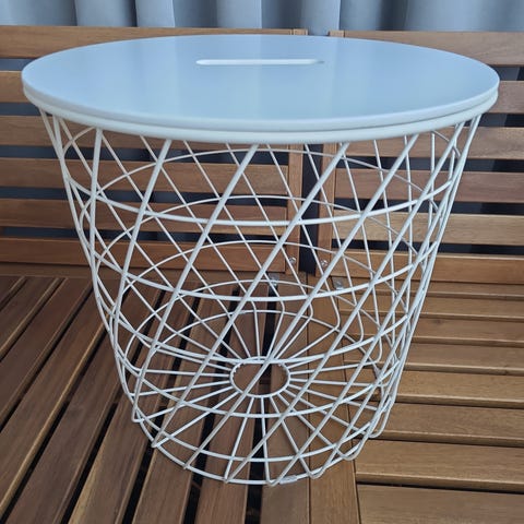 Kansi puinen,runko metallia.Kivasti saa esim pehmolelut säilytykseen.