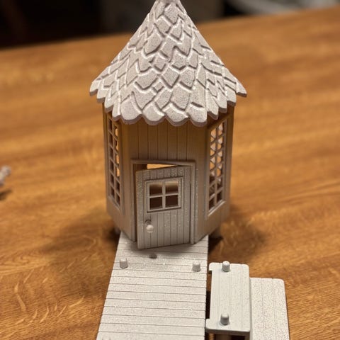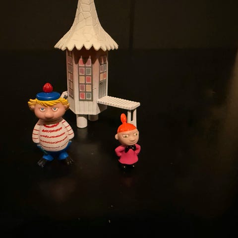 Muumi talviuimahuone ja 18 muumihahmoa.