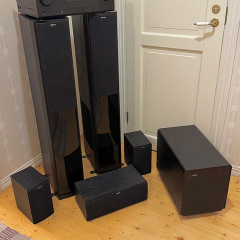 Myynnissä erittäin siisti ja täysin toimiva 5.1 audio / kotiteatterisetti. Kaikki osat ehjiä, mukana alkuperäiset kaukosäätimet. Ei kolhuja, ei naarmuja – heti käyttövalmis kokonaisuus.