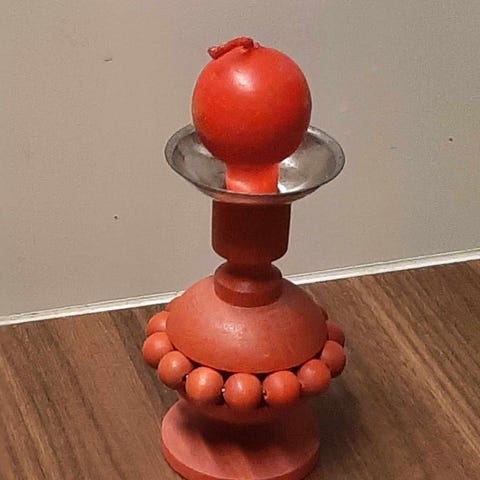 Aarikan vanha kynttilänjalka messinkiä ja lasia