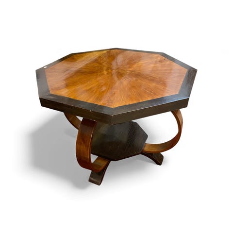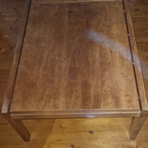Kaunis 30-40-luvun sohvapöytä. Pöydän koko 62,5 x 62,5 cm ja korkeus 58,5 cm. Pöydän yhdessä kulmassa on pieni vika ( kuvassa).
