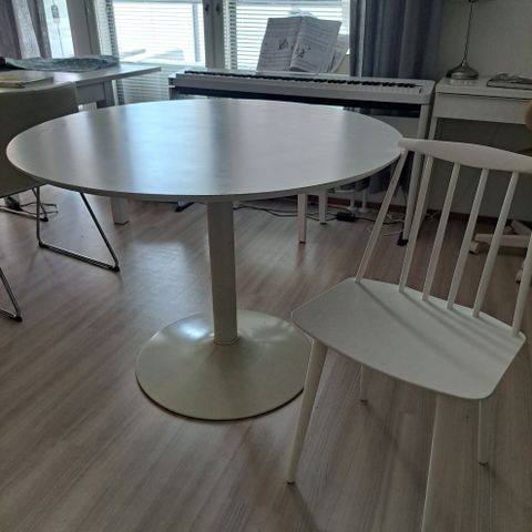 Pöydässä on pieniä, tavallisia käytönjälkiä, mutta ei kuitenkaan mitään suurta (nämä eivät oikein näy kuvissa). Yhdessä jalassa pieniä jälkiä teipistä, ne ja muut pienet jäljet on varmasti helposti putsattavissa. :)