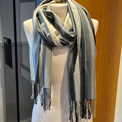Myynnissä vaaleanharmaa huivi, koko 70 × 180 cm. Kunto on hyvä. Savuton ja eläimetön talous.