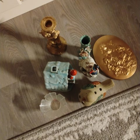 Annetaan kaksi ikkunakoristetta. Vasemmanpuoleisesta puuttuu ripustuskoukku.