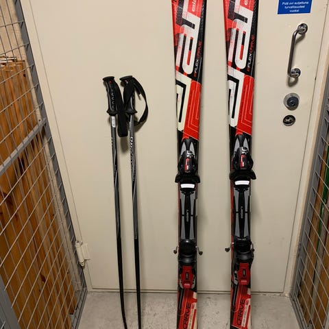 Laskettelu setti: sukset 175 cm, monot 40 jalalle ja laskettelusauvat 120 cm