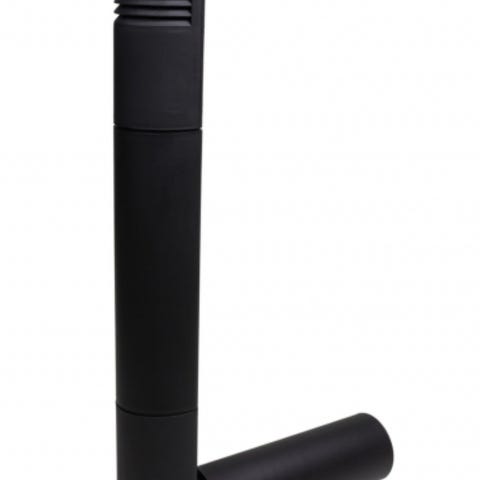 Sisältää hatun, pystyputken, seinäkiinnittimet ja kulmaputken. Voidaan käyttää myös tuloilmaputkena. Kulmaputken sisähalkaisija on 160 mm ja ulkohalkaisija 168 mm. Harmaa, uusi paketissa