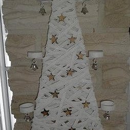 Valkoinen rottinki kuusikynttelikkö sekä kultainen tähti siluetti