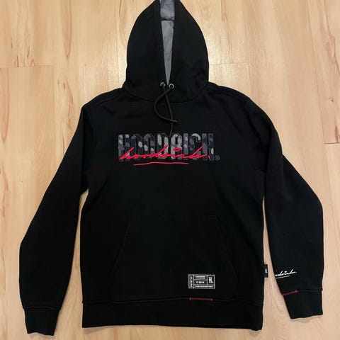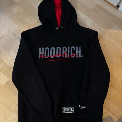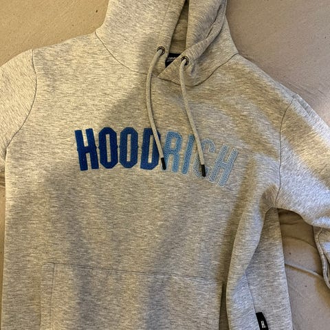 Hyväkuntoinen Hoodrich- huppari, koko M. Ainut miinus hihansuiden pienestä kulumasta, josta kuva 3.