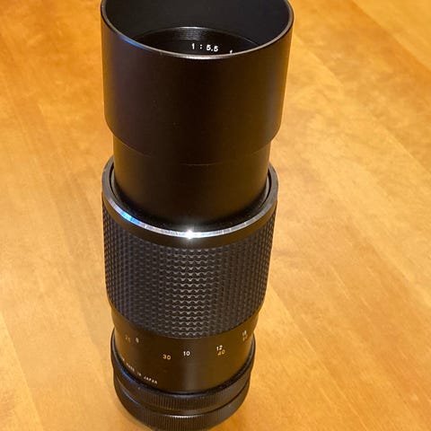 Popular on takuuvarma luonnonkuvaajan objektiivi. Valmistettu Japanissa.