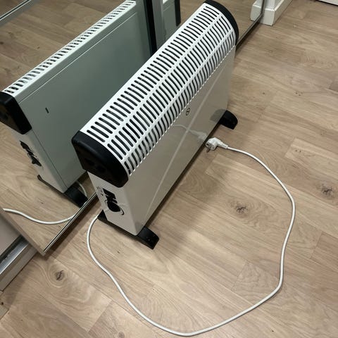 Electrolux sähkölämmitin valkoisella värillä. Lämmitin on varustettu säädettävällä termostaatilla ja mustilla jalustoilla. Sopii tilojen lämmitykseen.