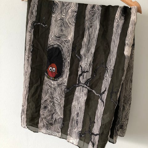 Myynnissä kirjava tuubihuivi, halkaisija 86 cm. Kunto on hyvä.