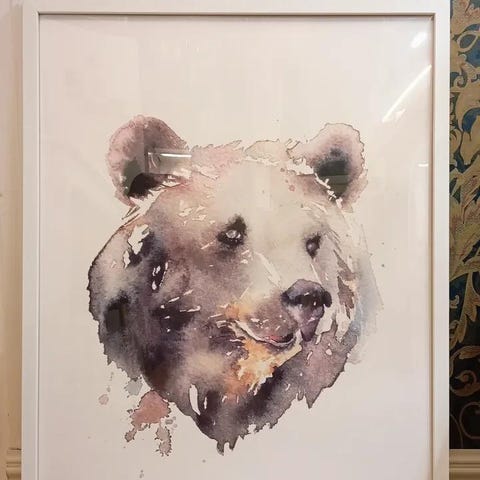 J.P. Priorin taulu nimeltään ”Chiffon Poppy” on taidejuliste, jossa on vaaleanpunainen ja punertava kukkakuva. Juliste on kehystetty valkoisella kehyksellä.