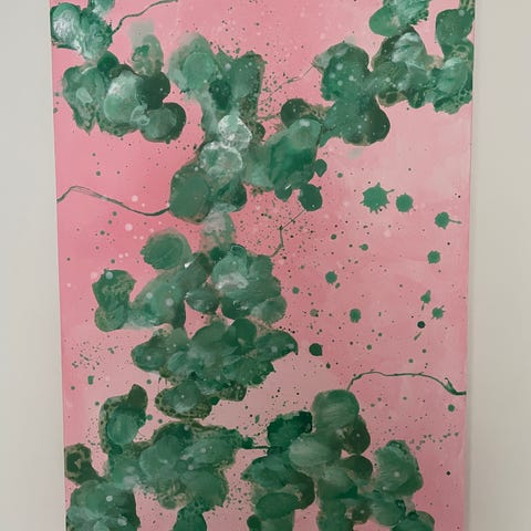Ainutlaatuinen Maalaus Vihreä ja Vaaleanpunainen Abstrakti