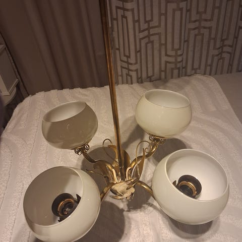 Kaunis ja siro Idman vintage kattovalaisin 50-60-luvulta, valmistajan leimalla. Opaalilasi kuvut ja kristallikoristeet