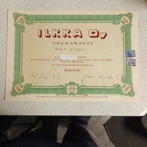 Osakekirja numero 3148 ja siihen kuuluva talonki, todella hyväkuntoiset.