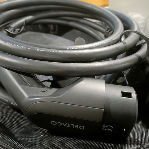 Deltaco spiraalikaapeli type 2, mode 3 / IP66, 11 kW / 16A. Uuden veroinen, kaapelilla ladattu yhden kerran. Ostettu marraskuussa, kuitti löytyy. 3 vuoden takuu.
