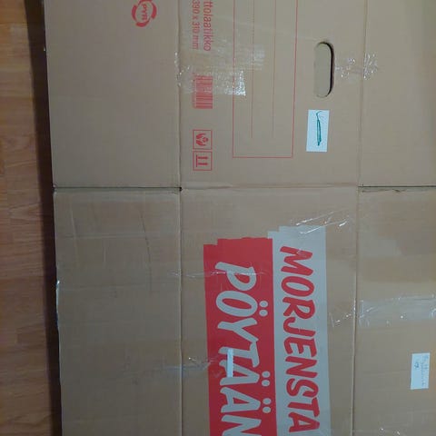 10 kpl muuttolaatikoita, K-Rauta&Clas Ohlsson, koko L, laatikoissa jotain merkintöjä