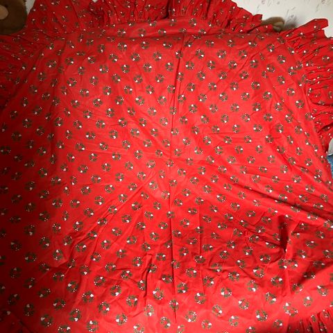 Kaunis pellavanvärinen - punainen pöytäliina. Koko 135x 180 cm
