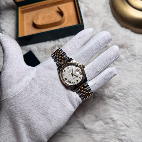 Tässä ysärivintage mallissa luotettava Rolex Caliber 3135 automaattikoneisto ja safiirilasi.