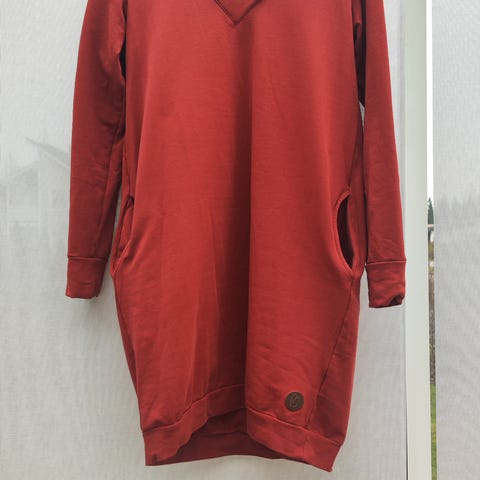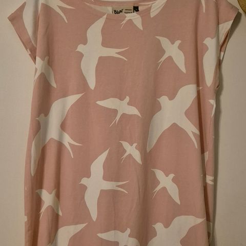 Blaan hennon vaaleanpunainen tunika, jota päälle sovitettu ja jäänyt käyttämättä.