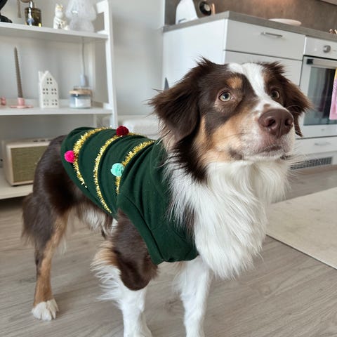 Pienen koiran jouluasut. Olleet normikokoisella mäyräkoiralla. Yhteensä 5€. Postikulut lisätään hintaan.
