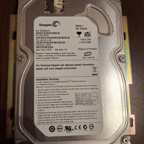 Myydään aito Hitachi Deskstar -kovalevy, kapasiteetti 80GB, 3.5” pöytäkonekokoluokka. Levy on toimivana irrotettu, eikä ole fyysisesti vaurioitunut. Mallinumero HDS728080PLA380. Kapasiteetti 80GB. Kierrosnopeus 7200 RPM. Liitäntä SATA (SATA I/1.5 Gb/s, yhteensopiva myös uudempiin SATA-portteihin). Käyttöjännite 5V/12V. Alkuperä Hitachi Global Storage Technologies (IBM eServer -testattu malli). Ei sovellu suoraan kannettaviin. Levy käyttää SATA-dataliitäntää ja SATA-virtaliitäntää, joten älä käytä samanaikaisesti SATA- ja legacy -virtaliitäntää. Kunto toimiva käytetty, normaalia käytön ja iän jälkeä. Ei kolhuja piirilevyssä tai liittimissä. Myydään ilman kaapeleita