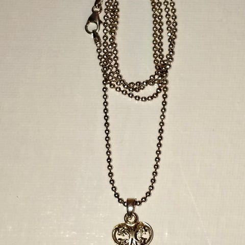 Riipuksen hopealeima lenkin sisällä, vaikea kuvata, osa näkyy kuvissa.