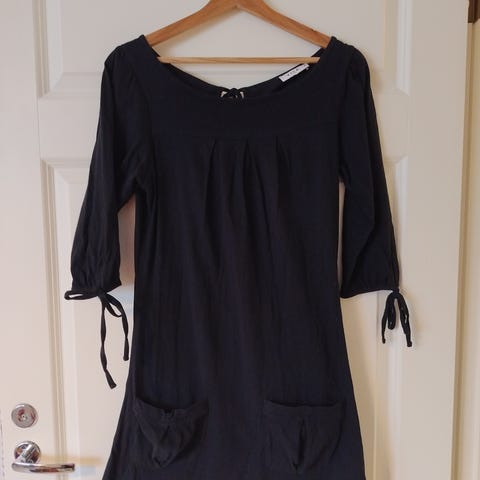 Myydään tummanvihreä VILAn mekko/tunika. Takana ylhäällä vetoketju. 3/4-osa hihat. Joustavaa materiaalia (79%polyesteri, 18%viskoosi, 3%elastaani).
