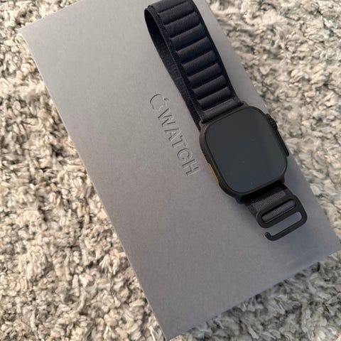 Apple Watch Ultra 3 älykello musta värinen, sisältää silikonirannekkeen. Sopii päivittäiseen käyttöön ja tarjoaa monipuolisia terveys- ja kuntoilutoimintoja.