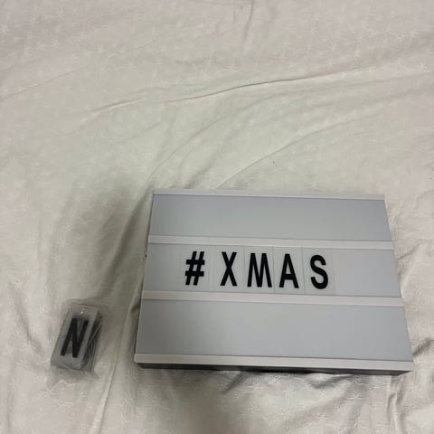 Valotaulu, johon voi vaihtaa kirjaimia ja merkkejä, ja tehdä omia sesonkien mukaisia ym. tervehdyksiä tai muita sanoja/nimiä. Esim. nimiäisiin tai lasten synttäreille tosi kiva.