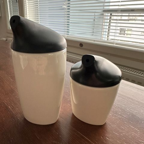 Myydään ehjät ja ok siistikuntoiset Iittalan/Arabian Ego-sarjan astiat (Stefan Lindfors). Korkeamman sirottimen kannessa käytönjälkeä (ks. kuva), pienemmästä uupuu kansi. Käytetty sokeripaloille.