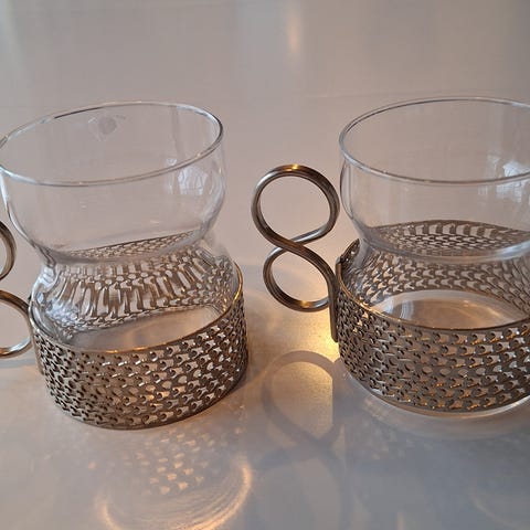 Kuvan uudenveroinen Tsaikka lasi teräspidikkeellä.