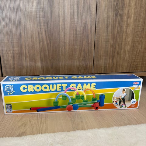 Täydellinen ja perinteinen neljän pelaajan krokettisetti. Mukava peli, jota voi pelata puutarhassa koko perheen kanssa. Neljän hengen setti, jossa on neljä mailaa, neljä palloa, kymmenen porttia ja kaksi lähtö- ja maalikeppiä. Peli sopii erinomaisesti sekä nuorille että vanhoille. Valmistettu puusta.