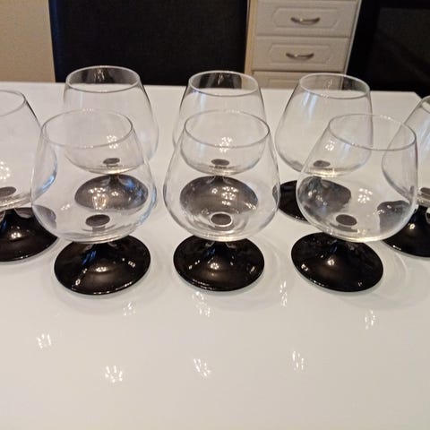 Myynnissä lasinen juomalasisetti, yhteensä 10 kappaletta.
