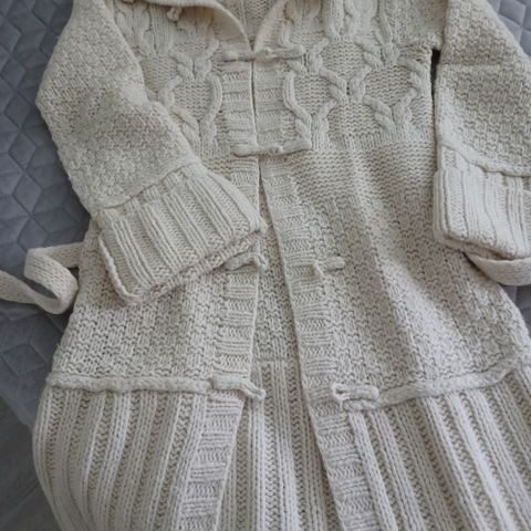 Musta, kevyt neuletakki, Signature. Materiaali 55% akryylia, 45% puuvillaa. Mustavalkoiset somisteet kauluksessa, etumuksessa ja hihoissa, lisänä samanlainen vyö. Suljetaan edestä neljällä hakasella. Kokolapun mukaan L, mielestäni toimii hyvin M-kokoiselle. Mittailen tarkemmin pyydettäessä.
