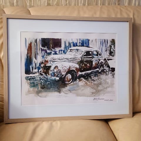 Uusi noin A3 koko maalaus sekateknikkalla.