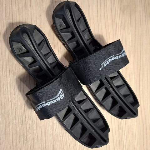 Käytännölliset ja joustavat teräsuojat, jotka takaavat luistimien terän optimaalisen suojan jään ulkopuolella. Vahvistettu materiaali kestää kovaa käyttöä.Howies Skateguard on suunniteltu erikoissuunnitellusta froteekankaasta, joka toimii kuin tyynynä ja imee kosteutta ja ehkäisee terien ruostumista.