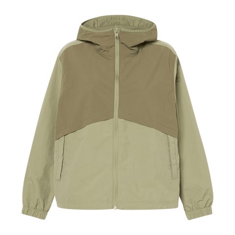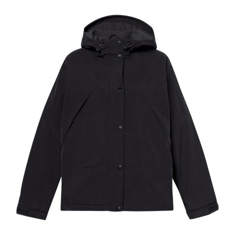 Vedenpitävä naisten takki 100 % kierrätettyä nailonia, fleecevuori, säädettävä istuvuus, huppu ja taskut. Mukavuutta ja toimivuutta yhdessä, säästä riippumatta. Normaali istuvuus.