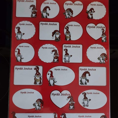 Puiset koristekuviot. Tonttutyttöjä 9 kpl. Enkeleitä 10 kpl.