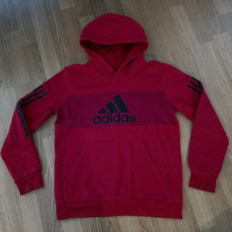 Myydään Adidasin punainen huppari juniorikokoa.