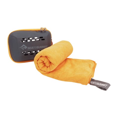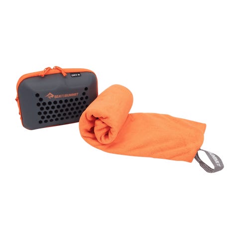 Kompakti mikrokuitupyyhe, joka tuntuu pehmeältä froteelta. Hyvä imukyky ja kuivuu nopeasti.Tek Towel Small on erittäin imukykyinen ja nopeasti kuivuva mikrokuitupyyhe, joka tuntuu perinteiseltä froteelta. Se tarjoaa erinomaista mukavuutta retkeilyyn, treeneihin tai matkoille, mutta on kompaktimpi kuin tavallinen pyyhe.Yksityiskohdat:- Mikrokuitusekoitus, jossa on pehmeä ja syvä nukka- Erittäin imukykyinen ja kuivuu nopeasti- Ripustuslenkki painonapilla, pyöristetyt kulmat- Toimitetaan pehmeässä vetoketjullisessa EVA-kotelossa- Konepestävä