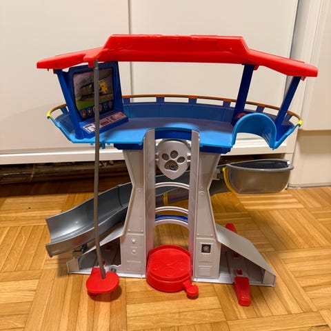 Ryhmä Hau Mahtitorni-päämaja, jossa liukumäki ja useita leikkitasoja. Vankkaa tekoa. Vipua vetämällä tornin keskeltä aukeaa valtava liukumäki ajokeille.